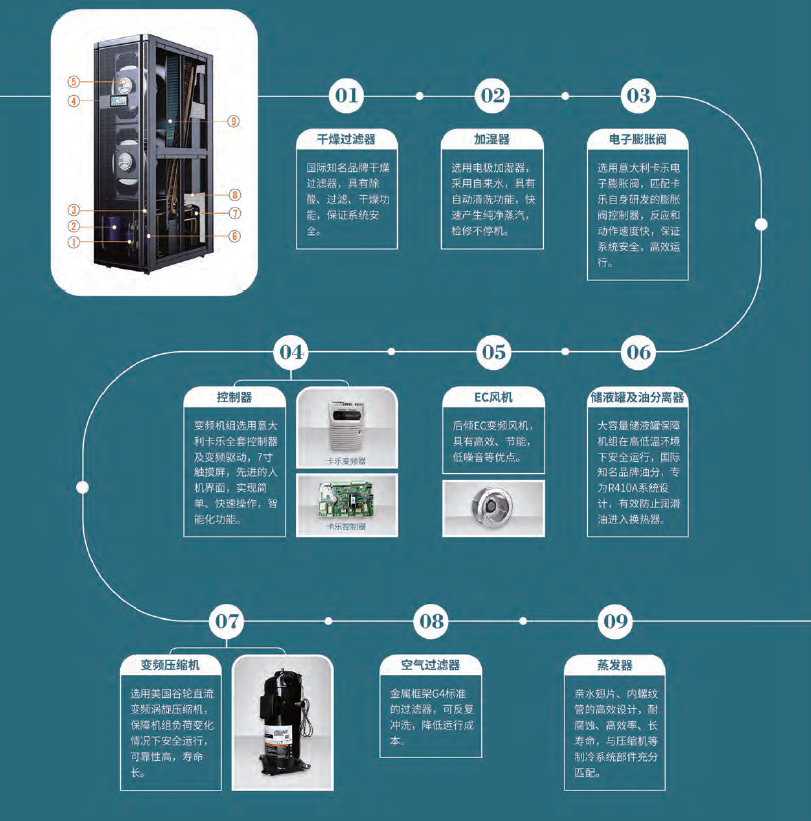機組可配置多組溫度傳感器,可實時檢測空調或服務器機柜不同位置的溫度,確保最佳的制冷效果;