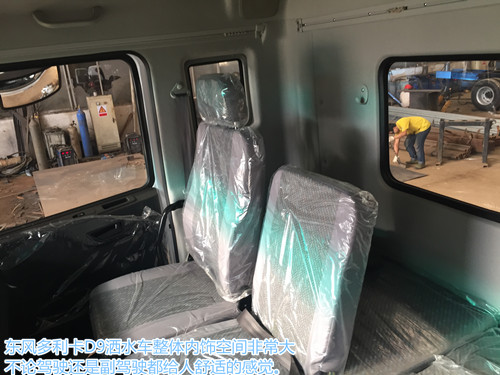東風多利卡D9灑水車駕駛室外觀介紹完了在來說說東風多利卡D9灑水車駕駛室內飾,這東風多利卡D9灑水車駕駛室內飾也是非常時尚,配置也是非常高調奢華的,首先東風多利卡D9灑水車駕駛室座椅才用的是純棉的,做起來非常柔軟,在也不怕坐時間久了屁股疼,副駕駛也是一樣的,后面還有哈臥鋪,供駕駛員休息用的,這款車能才承載3人,不論坐著還是躺著都能非常舒適,方向盤才用的是7寸圓形的方形盤,方便盤帶的有方向助力,使用的時候不用在費力,保存駕駛員的體力,和小型轎車一樣左邊是大燈和轉向燈開關,右邊是雨刮和霧燈開關,使用方便,中控旁邊就是空調開關和安全警示燈開關,CD收音機空調大小,暖風冷風開關,充電接口等,這個東風多利卡D9灑水車六檔變速箱就在右手邊,和手剎在一起,使用非常順手。駕駛室內的玻璃窗都采用的是電動的主駕駛室那邊有一鍵管理,東風多利卡D9灑水車整體內飾空間非常大,不論駕駛還是副駕駛都給人舒適的感覺。