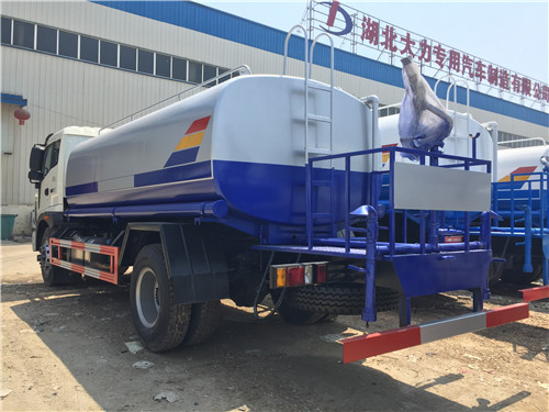 改裝配置:罐體用4MM碳鋼板制作,罐內(nèi)隔板具有防波作用,以減低汽車行駛時罐體液體的沖擊。整車帶一個專用灑水泵(垂直最大吸程6米),灑水寬度14米,射程28米。多功能灑水車配備2個前沖(噴)(能將路面泥巴、塵土、垃圾沖干凈);2個后灑(能均勻地將水灑在路面,一次灑水寬度14米)、2個側(cè)噴(花灑)(能均勻地將路旁綠化帶澆灌)、帶1個后工作平臺,平臺上安裝1個綠化灑水高炮(灑水炮可全方位旋轉(zhuǎn),可連續(xù)調(diào)成直沖狀、大雨、小雨、毛毛雨,霧狀可調(diào)節(jié)沖洗高大樹木),引水時間<5min,流量90m3/h。帶1個消防接頭,帶1個自流閥,1個過濾裝置、人性化爬梯及側(cè)防護欄,安裝灑水音樂喇叭。