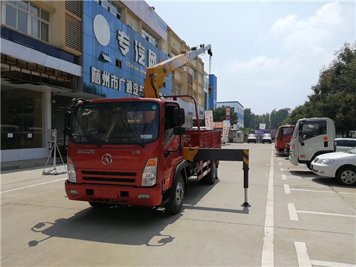 直臂式隨車吊是吊臂以下部分橫置在轎車駕駛室與轎車車廂之間, 吊臂縱置車廂之上。