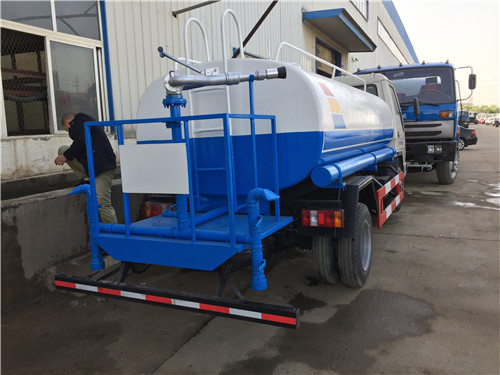以上情況僅適合于正常使用雙向前沖噴頭的環衛灑水車,如果只是用于壓塵降溫而使用后灑和側噴,其流量則相應減少,噴灑距離會更長。有些用戶希望灑水車流量越大越好,這是比較片面的想法。灑水車流量大,則灑水距離變短,加水次數增多,經濟性欠佳;從路面沖洗來說,水流過大,容易造成低洼處積水,灰塵較多的地方容易形成泥濘帶,干燥后出現塵土飛揚的現象。