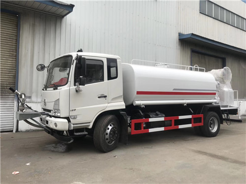 多功能東風天錦抑塵車罐體容積有11.85立方米,可經過了、特殊的防腐蝕防銹處理,運輸丙酮水溶液(一種無色透明液體,有特殊的辛辣氣味),其主要是用來給樹木綠化帶進行農藥噴灑的。
