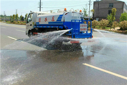 只能采用高壓低流量霧狀噴灑水,噴灑高度不得超過70厘米;嚴禁用鴨咀沖水代替灑水降塵;作業時間應注意避開交通擁擠時段,其他時段嚴禁沖灑水作業。城郊結合部及白天人流量小的路段,白天可視實際情況安排人工配合水車清洗作業。夜間作業不能響警示喇叭。