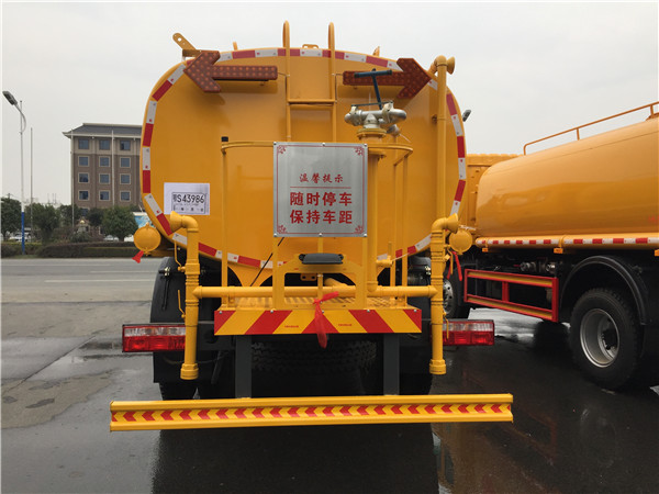 東風天錦12噸灑水車罐體采用4mm厚武鋼產專用容積板制作,采用機器壓板一次性成型技術,采用先進旋邊機,罐體包罐機工藝保證了罐體制作的精度和美觀。公告標準容積11.6立方米(可按用戶訂做12-15立方),罐體內采用先進的對接焊技術,罐體焊后采用噴丸漏檢測,使罐體具有強度高、重心穩,灑水車運載安全平衡等特點。配備全國質量評比第一名的杭州威龍(日本技術)大功率專用灑水泵。前沖(噴),后灑,帶側噴,后置工作平臺,平臺上安裝綠化灑水高壓炮(炮噴射形狀可調成直沖狀、大雨、中雨、毛毛雨、炮可360度旋轉,射程>35米)。帶自流閥,消防接口。帶自吸泵,可將池塘的水直接吸入罐體內也可直接從城市街道消防栓上連接注水,吸入罐體內。罐前量管(觀察罐內水位)、罐后爬梯、罐上罐口帶簡易護欄、罐側雙炮筒、6米長4寸鋼絲塑膠管兩根,灑水車罐體表面雙層油漆工藝,防銹、耐腐蝕,其余有廠家標配。可選擇加裝加裝藥盤、氣動控制閥、噴藥設備、罐內防腐等。灑水車也可做噴藥車使用,可根椐用戶要求進專業噴藥防腐處理,也可做企業單位運水用,緊急時可做消防車使用。