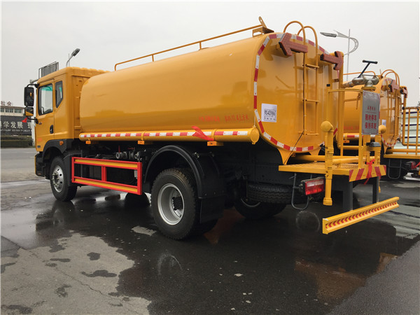 東風天錦12噸灑水車采用東風天錦中日合資DFL1160BX豪華底盤,排半帶臥可前翻駕駛室,康明斯180馬力國五發動機,東風6檔變速箱,軸距4500mm,4.5噸前橋,9噸后橋,9.00R20原廠鋼絲胎,原廠abs,原廠空調,帶方向助力,離合助力器,氣剎制動。