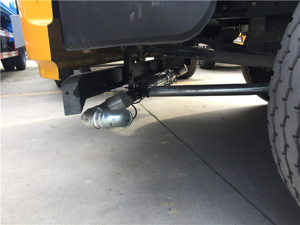 除了改變前沖噴頭的形式外,當灑水車標準配備三彎前沖時,受到底盤影響,如:采用福田小卡底盤時,由于灑水車前部過低,一般會將前沖噴頭位置改裝在駕駛室和罐體下方,俗稱“腰沖”,可有效避免上坡或路況差時對噴頭產生沖擊而造成的損壞。還可根據客戶要求對前沖噴頭加裝氣動或電氣控球閥,以方便司機不出駕駛室即可操控灑水噴頭的開關。