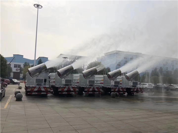 一種就是城市里面使用的抑塵車,抑塵車又稱為:霧炮車、噴藥車。霧炮車噴射的水霧顆粒達(dá)到微米級(jí),能有效分解空氣中的污染顆粒物、塵埃等,在霧霾天氣下用于降塵除霧,可以有效的緩解霧霾,其節(jié)水的特性同樣也可以用作灑水車使用。霧炮車還可以降塵、灑水,把樹上的灰塵洗掉。霧炮車噴灑出的水霧與懸浮在空氣中的PM2.5和PM10粉塵顆粒吸附、聚合、沉降,達(dá)到消除污染物和減霾的目的。盡管霧炮口徑巨大,但其噴灑耗水量?jī)H為傳統(tǒng)灑水車的兩到三成,覆蓋面積和除塵效率卻高出20倍。既提高效率,也避免路面積水影響交通。