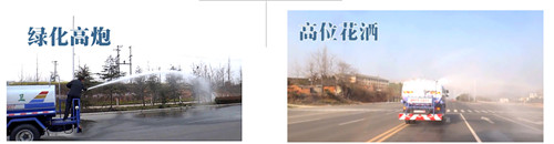 前沖主要是對路面進行沖洗,主要用于環衛路面清洗,后灑主要用于降塵,右位花灑也用于降塵也可以用于澆灌樹木。后工作平臺高炮就厲害了,這個灑水車后工作平臺高炮能用于消防滅火,也能用于澆灌距離遠又高的樹木,近的地方可用霧狀進行澆灌,就是多功能灑水炮。