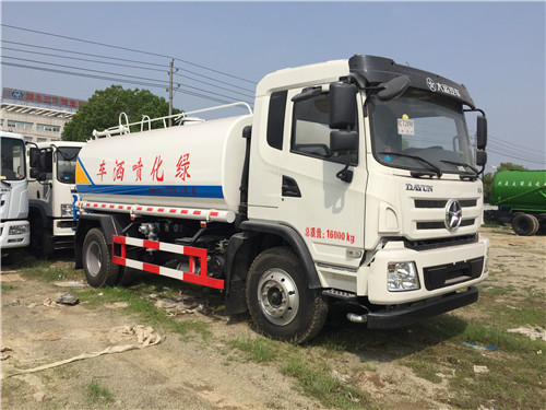 大運灑水車配置有大功率灑水泵,灑水泵帶自吸功能,能垂直吸6米,吸力非常大,還帶有消防接水口,能快速接水,灑水裝置有前沖,后灑,側噴,后工作平臺,平臺上安全綠化灑水水炮,其灑水車寬度14米,水炮射程可達30米,綠化灑水水炮可旋轉360°,還可調節成水柱裝,霧狀,大中小可任意調解,射程非常遠。