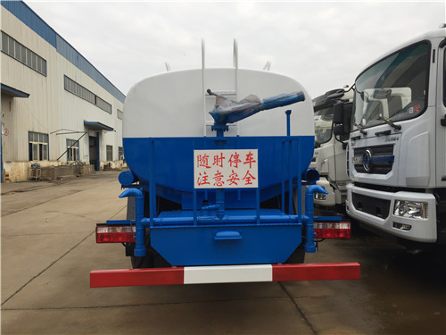 以上情況僅適合于正常使用雙向前沖噴頭的環衛灑水車,如果只是用于壓塵降溫而使用后灑和側噴,其流量則相應減少,噴灑距離會更長。有些用戶希望灑水車流量越大越好,這是比較片面的想法。灑水車流量大,則灑水距離變短,加水次數增多,經濟性欠佳;從路面沖洗來說,水流過大,容易造成低洼處積水,灰塵較多的地方容易形成泥濘帶,干燥后出現塵土飛揚的現象。