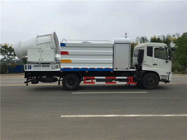 東風12噸抑塵車選配50米噴霧機達到除塵效果。霧炮機是根據(jù)風送原理,先使用進口高壓泵、微細霧化噴嘴將水霧化,再利用風機風量和風壓將霧化后的水霧送到較遠距離,使得水霧到達較遠距離同時能夠覆蓋更大面積,水霧與粉塵凝結(jié)后降落,從而達到降塵目的。