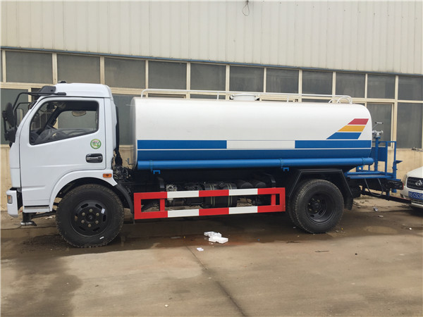 東風多利卡5方灑水車,朝柴73KW柴油發動機(95馬力),7.00-16尼龍胎,灑水車駕駛室顏色白色,自吸自排灑水泵,前沖,后灑,側噴,高位花灑,后平臺灑水炮,水罐容積5立方,2根罐體等長抽水管,一個消防接口,一自流口。