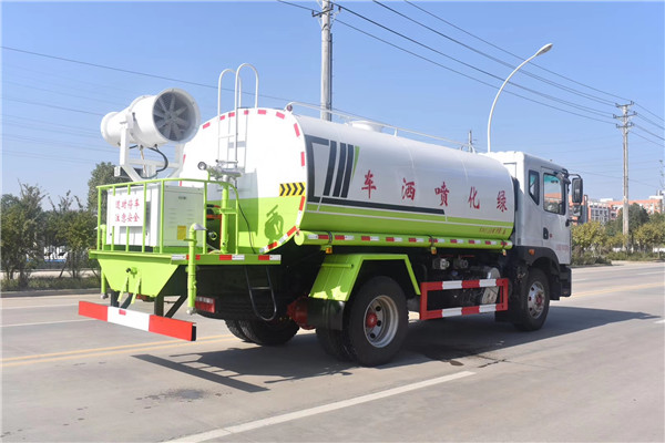 2、側(cè)噴、后灑――位于東風(fēng)D9國六14.5方噴霧車后工作平臺左右兩側(cè),側(cè)噴,即向側(cè)面噴灑的裝置,后灑,則是向后部噴灑的裝置,兩者水流形態(tài)都呈扇形,常用于道路壓塵降溫加濕,噴出的水薄而均勻,可避免噴灑后污水橫流的現(xiàn)象。