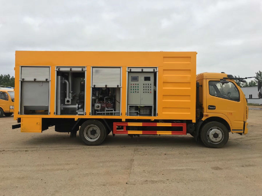 污水處理車是在二類載貨汽車底盤的基礎上加裝貨箱、分離箱、二次過慮箱、取力器、三相電機、配電柜、水環真空泵、排污泵、液壓馬達等專用裝置改裝而成。該車結構簡單、性能可靠、操控方便,可對化糞池快速處理。采用水環真空泵,可連續不間斷作業,該車自吸高度高達7-9米,吸污管可接20米以上。