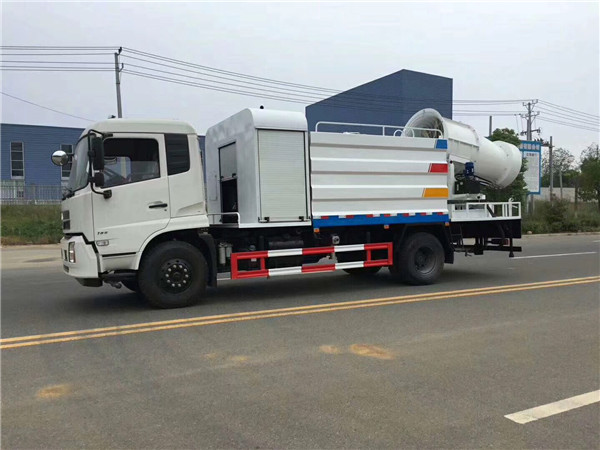 湖北泰茂建材自提一臺東風12噸100米多功能抑塵車,是多功能抑塵車中銷量最好的一款,罐體可裝水12噸,霧炮射程70米,兼具灑水車全部功能,仿天錦駕駛室,高配置,低價格,百公里綜合油耗26升左右,該車免征環保齊全,無需繳納購置稅。