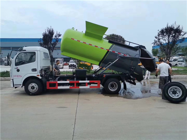 5、環衛餐廚垃圾車側邊安裝了方便對垃圾箱進行沖洗的高壓清洗系統。