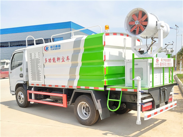 東風藍牌抑塵車主要由發動機帶動變速箱,變速箱上安裝的取力器帶動灑水泵,灑水泵產生動力,將罐體內部的液體通過管網噴灑出去。工作范圍:自吸高度:≤9m,灑水寬度:≥15m,最大射程:≥20m;可調節成柱狀,射程≥35m;也可調節成霧狀,射程≥8m。副發動機帶動100米抑塵炮,全自動遙控操作。360°旋轉,移動式作業。