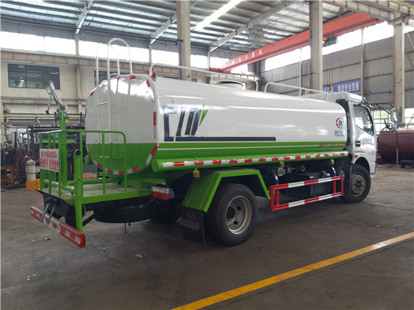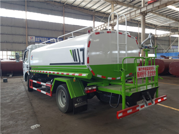 灑水車噴水出口: 前沖,后灑,后工作臺高炮,前沖(噴)后灑、帶側噴(花灑)、帶后工作平臺、平臺上安裝綠化灑水高炮(炮有大雨、中雨、毛毛雨、霧狀可調節),帶吸水管,帶消防接頭
