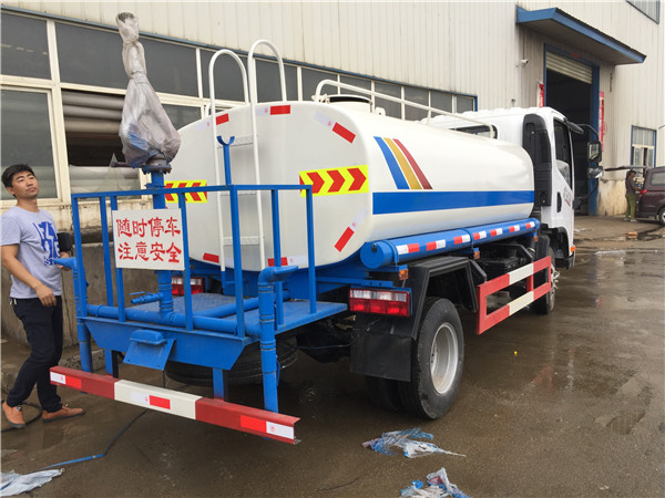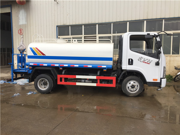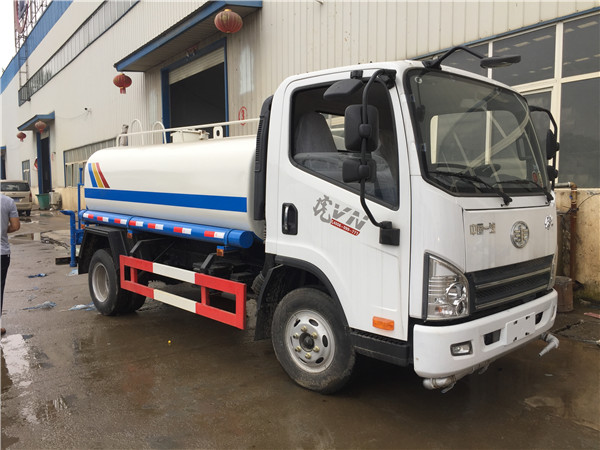 2、新款解放灑水車標配前沖、后灑、側噴、后工作平臺、綠化炮、自流閥、消防接口、水位計各1個,輸水管3米2根,罐體右后上方帶花灑2個。