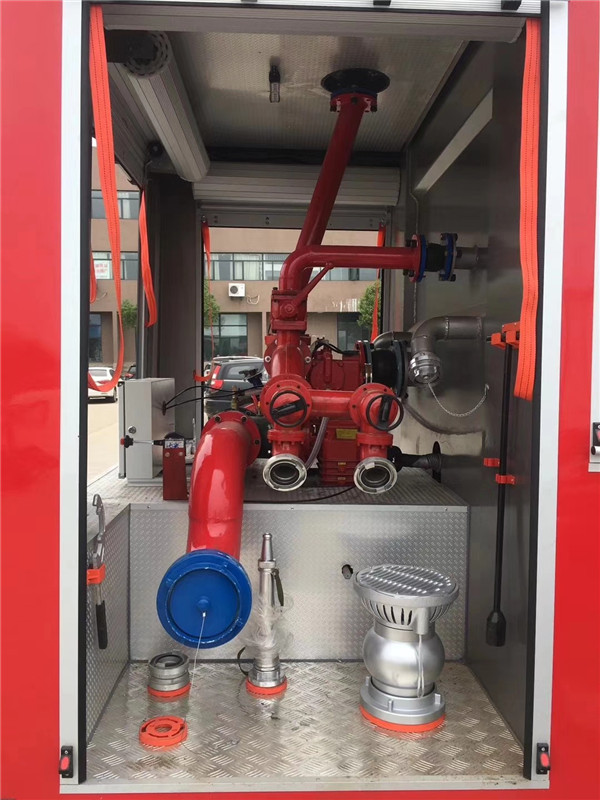 罐體后帶工作平臺,平臺上安裝的有綠化灑水炮,灑水炮和消防炮都能夠全方位360度旋轉,噴水分別可以調成直流狀、霧狀、小雨、毛毛雨。客戶可以從吸水到打水,平射,仰射,把水狀調致流狀、霧狀、小雨、毛毛雨等做了全方位的操作演練,并且打開報警裝置的操作示范,如果您的所在地在北方,那我們還可以在水泵處加裝加熱裝置,避免冬天溫度過低凍水現象的發生。