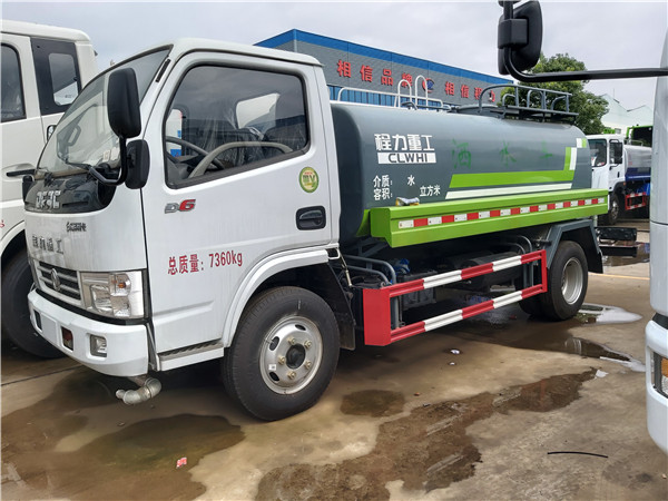 東風灑水車前裝有鴨形噴嘴或圓頭沖嘴,后面裝有圓柱開灑水噴嘴或蓮蓬頭噴嘴,后部有一工作平臺,裝配有水炮。后部還可裝8個噴嘴(選裝)噴水器一般用于沖洗街道,起除塵和降溫作用,其噴水器可以用調節噴嘴螺紋的方法改變噴水器的噴灑方向和角度,高射水炮可以用于城鄉園林綠化及應急消防。蓮蓬嘴可以澆落路中間噴水器沖起的灰塵,起到清潔空氣的作用。