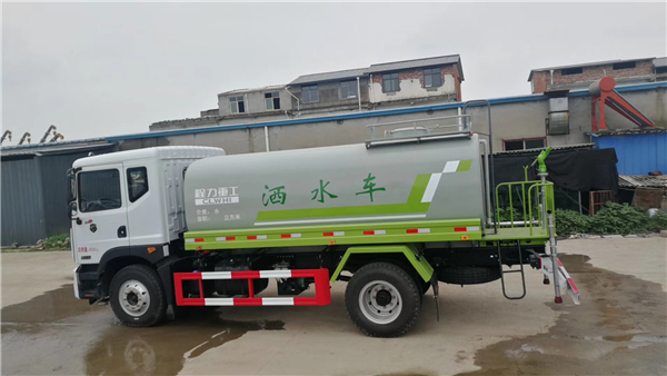 6.功能說明: 灑水車前裝有鴨形噴嘴或圓頭沖嘴,后面裝有圓柱開灑水噴嘴或蓮蓬頭噴嘴,后部有一工作平臺,裝配有水炮。帶消防接頭,帶自流閥,帶自吸功能,選配20米綠化消防卷盤。