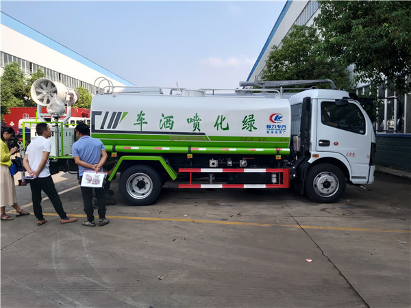 國六東風灑水車:東風底盤,軸距3360mm,安徽全柴490EGR發動機,7.00-16尼龍胎,帶暖風,氣剎(或油剎),國六東風灑水車價格最低。▲垂直吸程>7米,灑水寬度>14米,射程>28米。前沖(噴)):(能將路面泥巴、塵土、垃圾沖干凈);后灑(能均勻地將水灑在路面,灑水寬度>14米)、前側噴(花灑)(均勻地將路旁綠化帶澆灌)、后工作平臺,平臺上裝綠化灑水炮(炮有大雨、中雨、毛毛雨、霧狀可調節沖洗高大樹木),灑水泵,消防接頭,自流閥,過濾裝置、人性化爬梯及側防護欄,音樂喇叭。