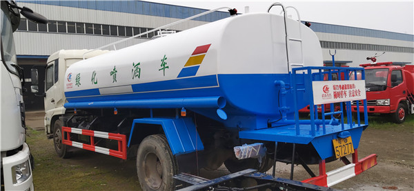 隨車選裝20米綠化卷盤,可噴灑農藥,罐體金屬漆罐體制作:佛山灑水車采用自動流水線罐體生產工藝分為:下料、拼板自動焊,封頭旋壓成型,罐體一次滾壓成型等國內先進生產工藝.罐體材料多采用優質碳鋼板生產。