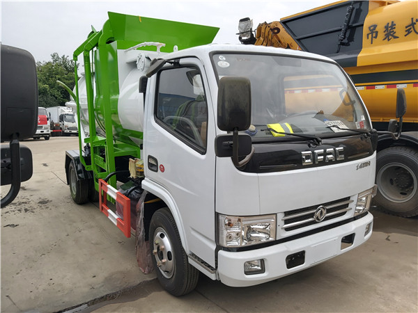 廚余垃圾車:垃圾斗固定在車身,可翻起自卸。在車廂一側有提升機,可將垃圾桶掛上自動倒入垃圾箱內(nèi)。垃圾桶放在路邊或小區(qū),隔一段距離放一個,可放240升350升的塑料桶。