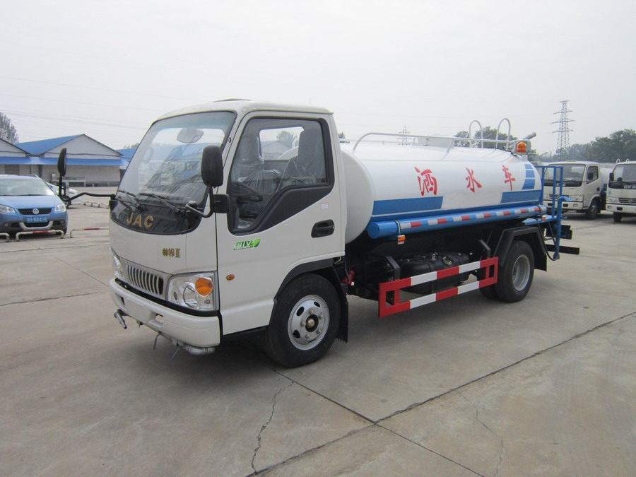 4、江鈴5噸灑水車 底盤配置:江鈴原廠駕駛室、底盤型號:JX1061TG25、115馬力發動機、國五排放標準 5檔變速箱 外形尺寸:5990×1960×2350(mm) 輪胎:7.00R16LT 10PR 軸距:3360MM 前/后橋:2.5t/3.7t 總質量:5880(Kg) 整備質量:3190(Kg) 額定載質量:2560(Kg)