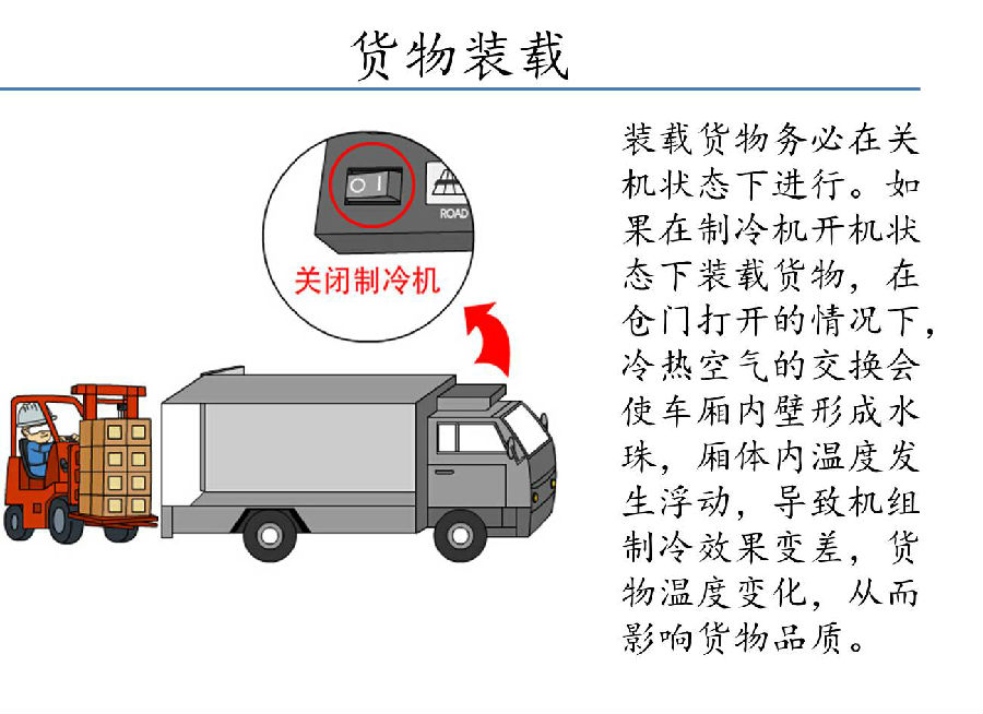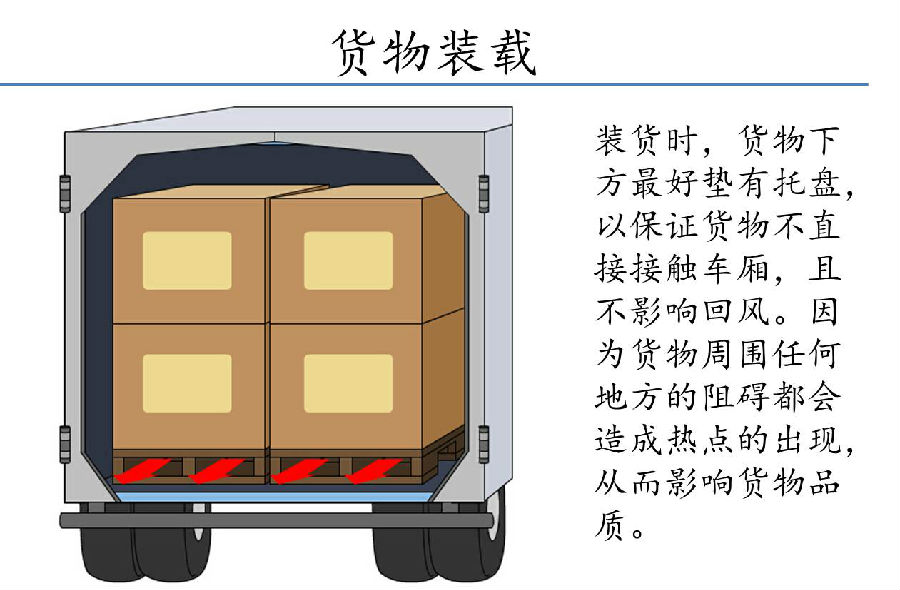 6、冷藏車(chē)正確裝卸貨物是保證了冷鏈運(yùn)輸有效關(guān)鍵。