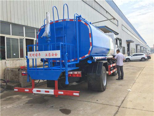 灑水車上裝配置:罐體有效容積約為15立方灑水車,隨州億豐泵,罐體鋼板為4MM碳鋼,罐體及整車外形尺寸按照公告。整車前沖、后灑、側噴、帶65消防接口,后平臺帶泡不帶門,前封頭帶水位計,后平臺主管路帶1寸澆花接口,后爬梯。平臺后部帶小安全告知牌:“隨時停車,注意安全”,帶兩根水管及陰陽端。罐體顏色:上白色下東風蘭,罐體兩側噴“灑水車”,貼反光標示。