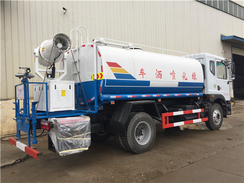 前沖主要是對路面進行沖洗,主要用于環(huán)衛(wèi)路面清洗,后灑主要用于降塵,右位花灑也用于降塵也可以用于澆灌樹木。后工作平臺高炮就厲害了,這個抑塵車后工作平臺高炮能用于消防滅火,也能用于澆灌距離遠又高的樹木,近的地方可用霧狀進行澆灌,就是多功能灑水炮。