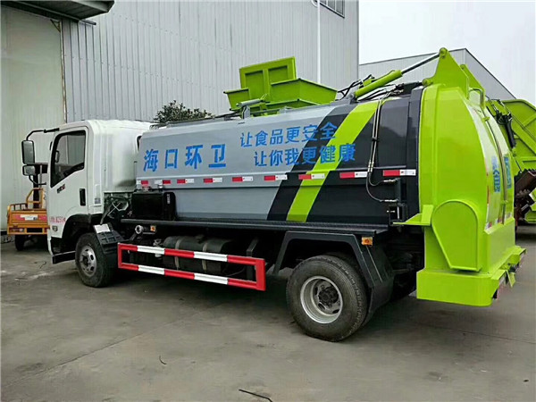 餐廚垃圾車的工作過程是從車后部填裝口倒入, 經破碎、壓縮壓入車廂內,因而裝載容量比一般垃圾車大。餐廚垃圾時既不污染環境,而且減輕了清潔工人的勞動強度。本公司生產的后裝餐廚垃圾車采用了電腦控制自動操作裝置,自動化程度更高。
