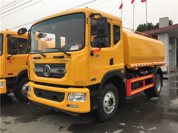 灑水車上裝配置:罐體有效容積12立方,采用5毫米厚武鋼碳板板自動焊接制作,配品牌大功率灑水泵,帶前噴后灑側(cè)噴,尾部平臺帶高位水炮,可自吸自排。前沖14米寬,水炮射程28米,自吸深度7米。