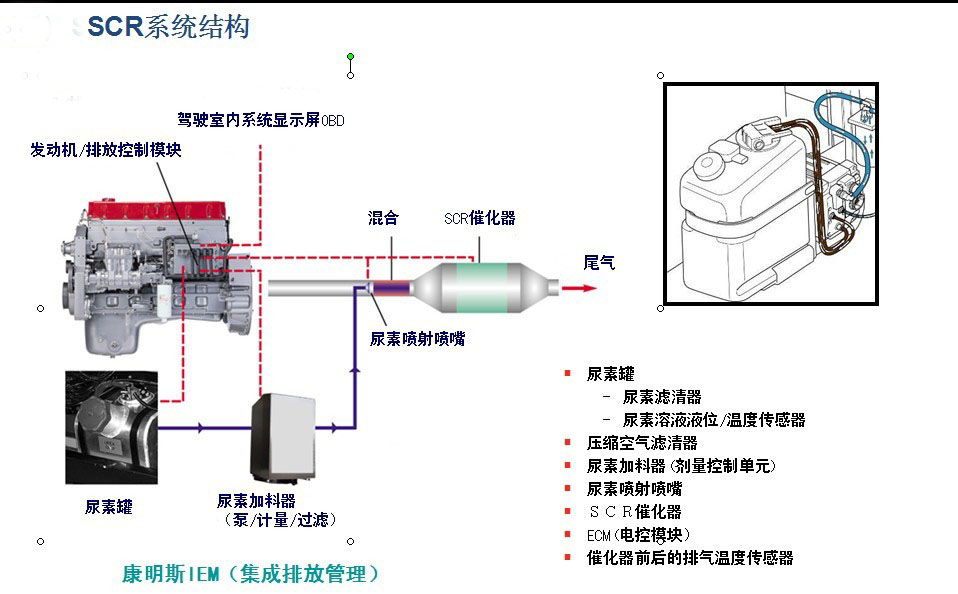 柴油發(fā)動(dòng)機(jī)的排放是指發(fā)動(dòng)機(jī)在工作過(guò)程中產(chǎn)生的有害氣體,主要有CH(碳?xì)浠衔铮Ox(氮氧化物)、PM(微粒,碳煙)、CO(一氧化碳)為主。國(guó)3靠提高發(fā)動(dòng)機(jī)噴油壓力,提高燃料的燃燒充分性,可以降低多數(shù)有害氣體的排放水平。但是高溫、高壓易導(dǎo)致NOx(氮氧化物)排放物的提升,國(guó)4需引入發(fā)動(dòng)機(jī)機(jī)外凈化技術(shù)。國(guó)Ⅳ階段必須應(yīng)用一種后處理技術(shù),就是使用排氣后處理技術(shù)來(lái)控制排放。國(guó)際上,絕大部分發(fā)動(dòng)機(jī)制造商在改進(jìn)歐Ⅲ發(fā)動(dòng)機(jī)的基礎(chǔ)上,再加上SCR或EGR+DOC+DPF等后處理系統(tǒng)來(lái)實(shí)現(xiàn)的。