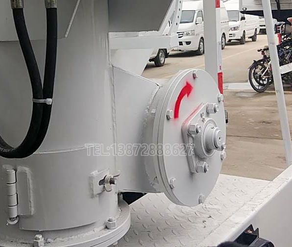 3、點(diǎn)擊操作箱中的液壓?jiǎn)?dòng)按鈕(圖標(biāo)1),然后操作車頂絞龍上升(圖標(biāo)2)和左轉(zhuǎn)或右轉(zhuǎn)(圖標(biāo)3),使之對(duì)準(zhǔn)料塔卸料口,完成后點(diǎn)擊液壓停止按鈕(圖標(biāo)5)停止液壓系統(tǒng)工作。(注:卸料時(shí)需將液壓停止,長(zhǎng)時(shí)間卸料時(shí)如液壓任開啟可能會(huì)燒壞控制閥)